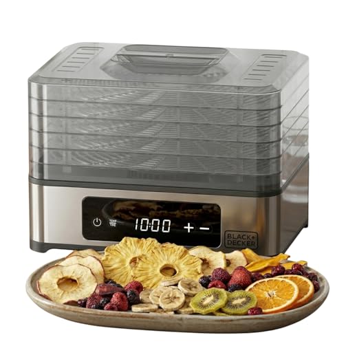 Black+Decker - Déshydrateur alimentaire 400 W | 5 plateaux transparents 29x21 cm | Commande tactile digitale | Température réglable 35-70 °C | Minuteur 48 h | Arrêt automatique | Sans BPA