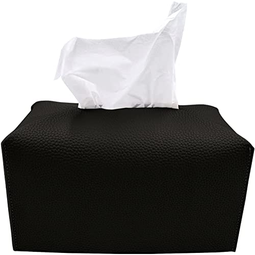 carrotez Tissue Box Cover, [Refined] Modern PU Leather Rectangular Tissue Box Holder - Decorative Holder/Organizer for Bathroom Vanity Countertop, Night Stands, Office Desk 9.5"X5"X5" - Black