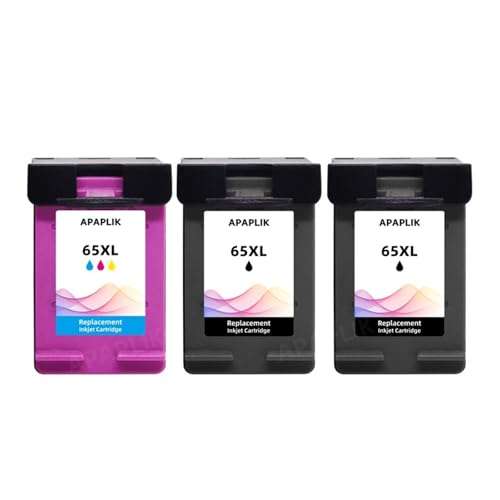 MAXINGJUWH Cartouche d'encre Compatible for H-*/P 65 XL, for d-eskjet série 3700 3720 3721 3722 3723 3724 3730 3732(2Black and 1Color)