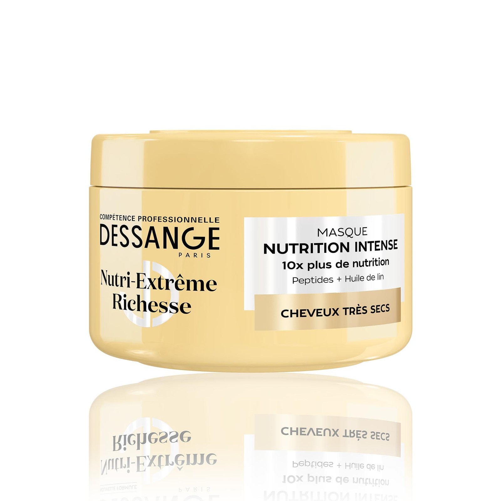 DESSANGE - Masque Cheveux Nutrition Intense Nutri-Extrême Richesse - Formule Enrichie En Peptides & Huile De Lin - Douceur & Éclat - Cheveux Très Secs - 280ml