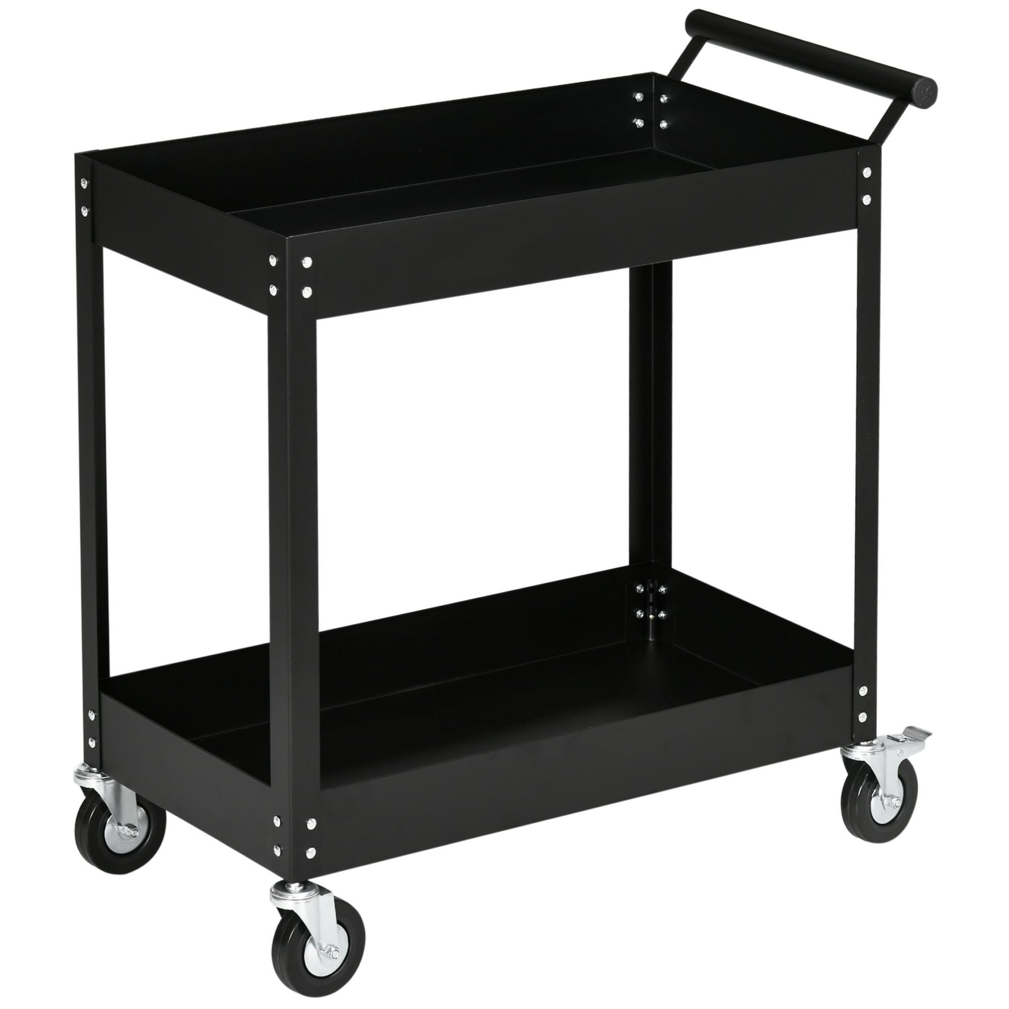 Chariot desserte d'atelier en acier 2 plateaux sur roulettes avec poignée - charge max. 150 kg - 84,5 x 38 x 84 cm noir