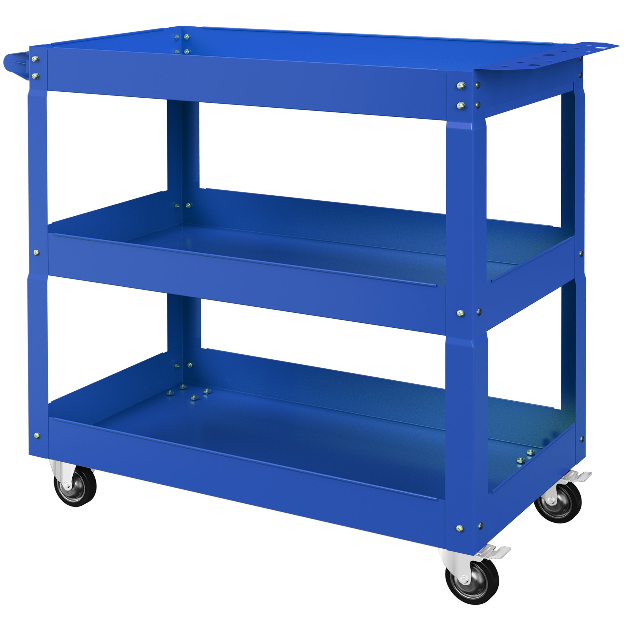 Chariot desserte d'atelier acier 3 plateaux sur roulettes avec poignée - charge max. 150 kg - 83 x 35,3 x 76 cm bleu