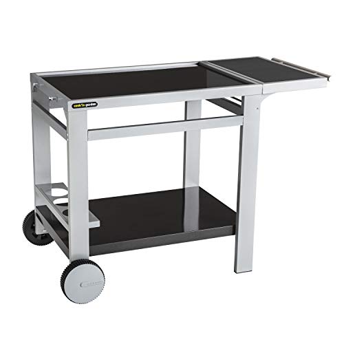 Cook’in Garden - Desserte Media L, Chariot avec Plan de Travail Mobile et Roues Renforcées, Meuble Extérieur Idéal Jardin ou Terrasse, Support Idéal pour Plancha ou Barbecue, Noir/Gris