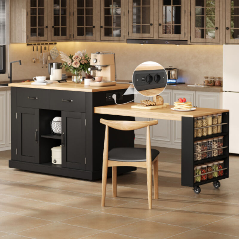 Îlot de cuisine compact 120x45x90 cm avec multiples rangements, panier bois et desserte noire mobile