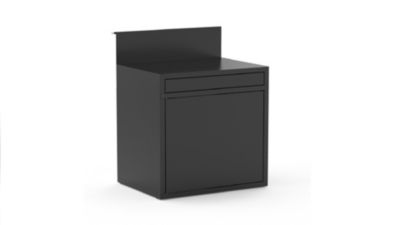 Desserte de cuisine, cloisons amovibles, avec plan de travail, finition bois, en verre trempé, noire