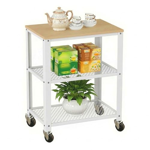 MSV Desserte de Cuisine avec 3 Niveaux 63x40x25,5cm de métal en Blanc, 5 cm