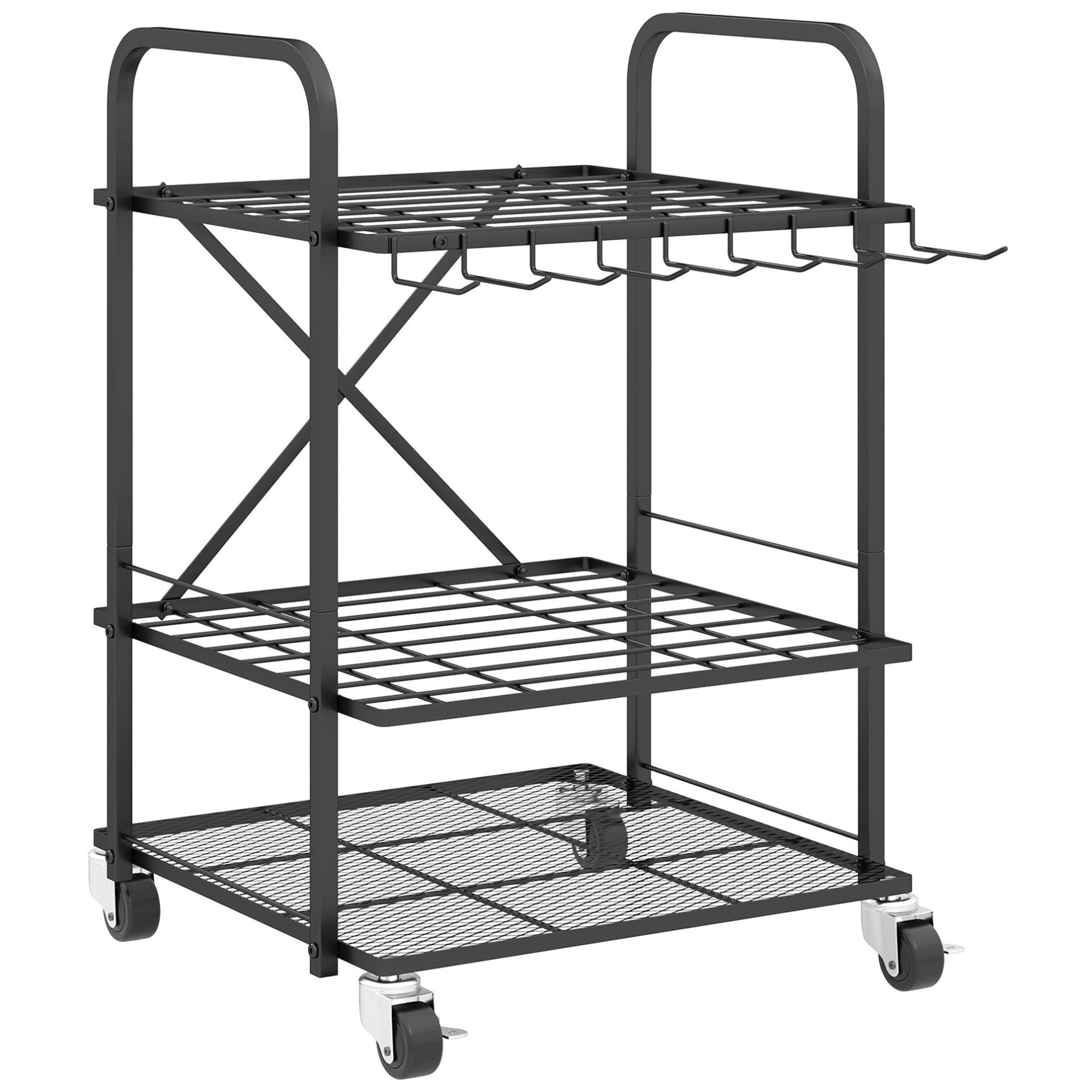 Organisateur d'outils de jardin - chariot de jardin - desserte - 9 crochets, 20 compartiments - métal noir