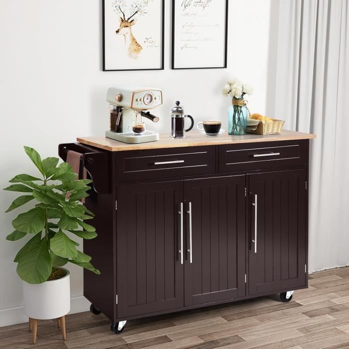 RELAX4LIFE Desserte Cuisine Buffet à Roulettes 3 Portes & 2 Tiroirs & 6 Compartiments Porte-Serviettes et Porte-Outils Marron