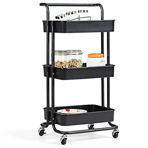 GIANTEX Chariot de Rangement à 3 Niveaux avec 3 Paniers, Chariot de Cuisine Service avec 4 Roues Universelles & 2 Freins, Desserte à roulettes pour Cuisine, Salon, Salle de Bain, 42x35x87 cm (Noir)