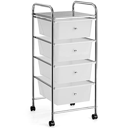 COSTWAY Chariot de Rangement à roulettes avec 4 Tiroirs Plastiques Amovibles, Tour de Rangement à roulettes, Cadre en Métal, Desserte pour Cuisine, Salle de Bain, École, 37 x 32 x 76 cm (Transparent)