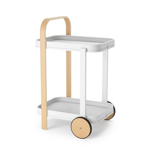 Umbra Bellwood Desserte à roulettes et Table d'appoint avec 2 étages et Plateaux Amovibles, Blanc/Naturel