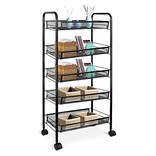 Todeco - Chariots de Service, Desserte à roulettes - Matériau: Fer - Dimensions: 105 x 29,5 x 12 cm - 5 Niveaux, 104 x 46 x 27 cm, Noir