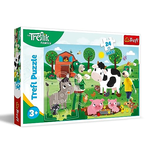 Trefl-The Treflik Family, Trefliki à la Campagne - Puzzle 24 éléments -Puzzles colorés avec des Personnages du Dessin animé La Famille Trefliki, Un Jeu créatif pour Les Enfants de Plus de 3 Ans