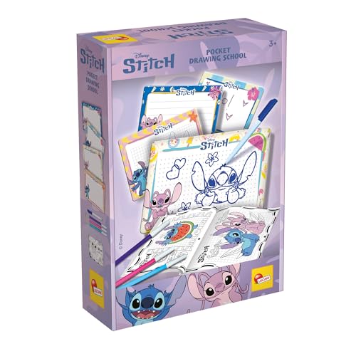 Lisciani - Disney Stitch Pocket Drawing School - Jeu Dessins pour Enfants dès 3 Ans - Activité Pré Écriture & Dessin - Mini Ardoises Effaçables & Feutres - Cahier Activités Format Poche pour Dessiner