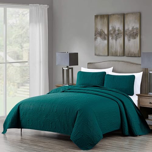 Chezmoi Collection Austin Ensemble de Dessus-de-lit de 3 pièces Dont Couvre-lit surdimensionné (très Grand lit-King, Bleu Sarcelle)