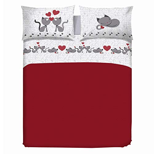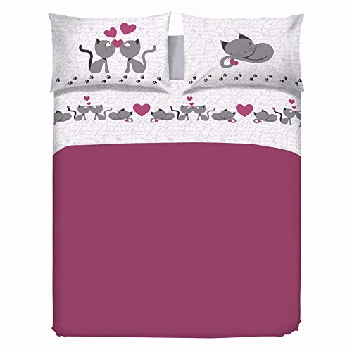 PENSIERI DELICATI Parure de lit 1 Place et demie 100% Coton, Parure de lit 1 Place et demie 120 x 200 cm, avec Drap Plat, Dessus et 1 taie d'oreiller, fabriquée en Italie, Fantaisie Chatons Roses