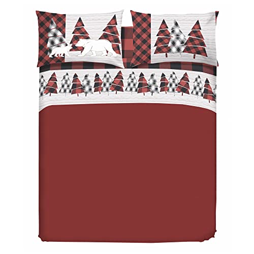 PENSIERI DELICATI Parure de lit Double 100% Coton, Parure de lit Double 180 x 200 cm, avec Drap Plat, Dessus et 2 taies d'oreiller, fabriquée en Italie, Motif Canada Rouge