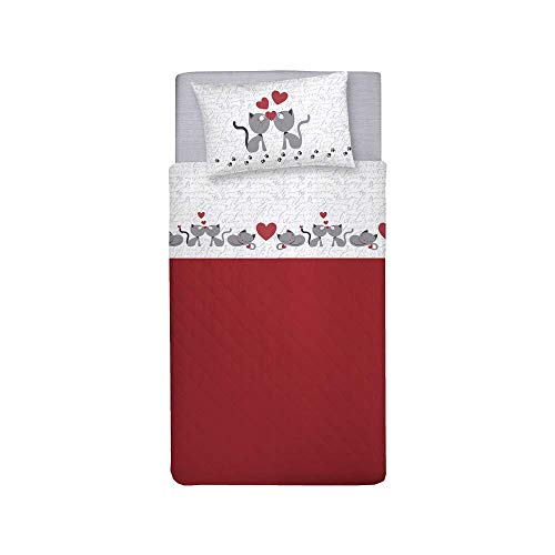 PENSIERI DELICATI Parure de lit Simple 100% Coton, Parure de lit Simple 90 x 200 cm avec Drap Plat, Drap Dessus et 1 taie d'oreiller, fabriquée en Italie, Fantaisie Love Mountain Rouge