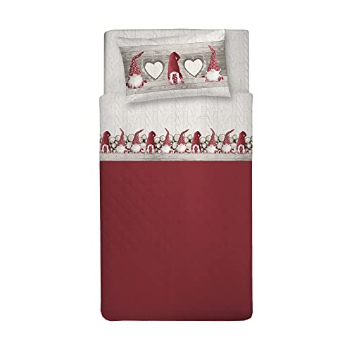 PENSIERI DELICATI Parure de lit 1 Place et demie 100% Coton, Parure de lit 1 Place et demie 120 x 200 cm, avec Drap Plat, Dessus et 1 taie d'oreiller, fabriquée en Italie, Fantaisie GNOME Rouge
