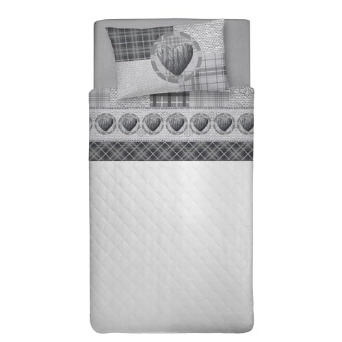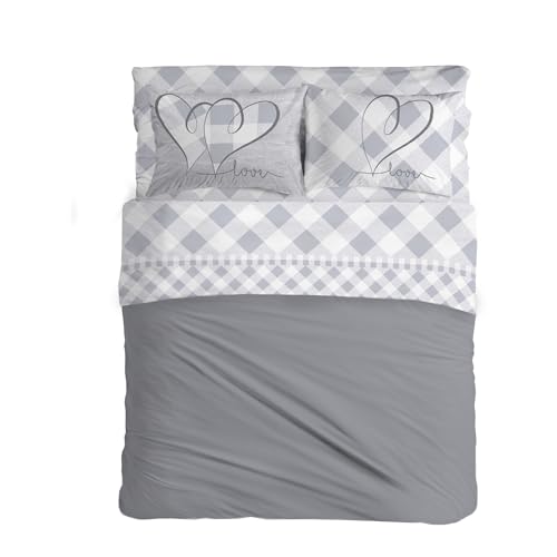 PENSIERI DELICATI Parure de lit 1 Place et demie 100% Coton, Parure de lit 1 Place et demie 120 x 200 cm, avec Drap Plat, Dessus et 1 taie d'oreiller, fabriquée en Italie, Fantaisie Lovely Check Gris