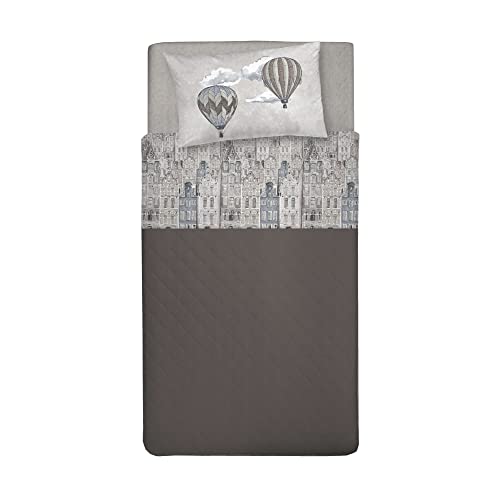 PENSIERI DELICATI Parure de lit 1 Place et demie 100% Coton, Parure de lit 1 Place et demie 120 x 200 cm, avec Drap Plat, Dessus et 1 taie d'oreiller, fabriquée en Italie, Motif Ballons Beiges