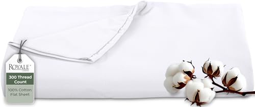 Royale Linens Drap Plat 100% Coton peigné à Longues Fibres 300 Fils – Super Doux – Draps de Dessus – Drap Plat Queen Vendu séparément – Draps en Percale Respirants, Frais et Nets Uniquement (Grand