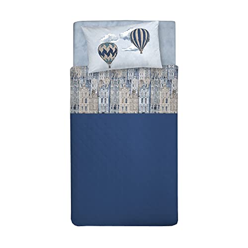 PENSIERI DELICATI Parure de lit 1 Place et demie 100% Coton, Parure de lit 1 Place et demie 120 x 200 cm, avec Drap Plat, Dessus et 1 taie d'oreiller, fabriquée en Italie, Motif Ballons Bleu Clair