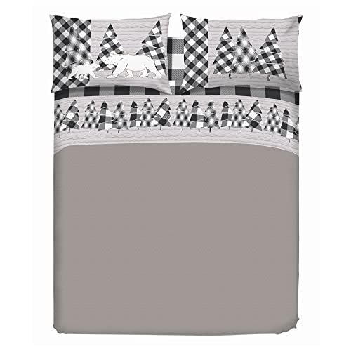 PENSIERI DELICATI Parure de lit Double 100% Coton, Parure de lit Double 180 x 200 cm, avec Drap Plat, Dessus et 2 taies d'oreiller, fabriquée en Italie, Motif Tartan cerf Gris