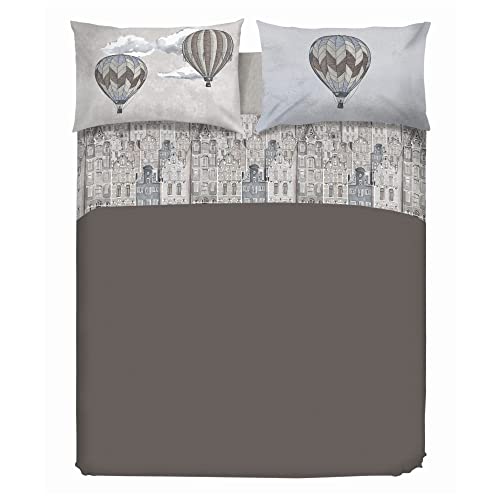 PENSIERI DELICATI Parure de lit Double 100% Coton, Parure de lit Double 180 x 200 cm, avec Drap Plat, Dessus et 2 taies d'oreiller, fabriquée en Italie, Motif Ballons Beiges