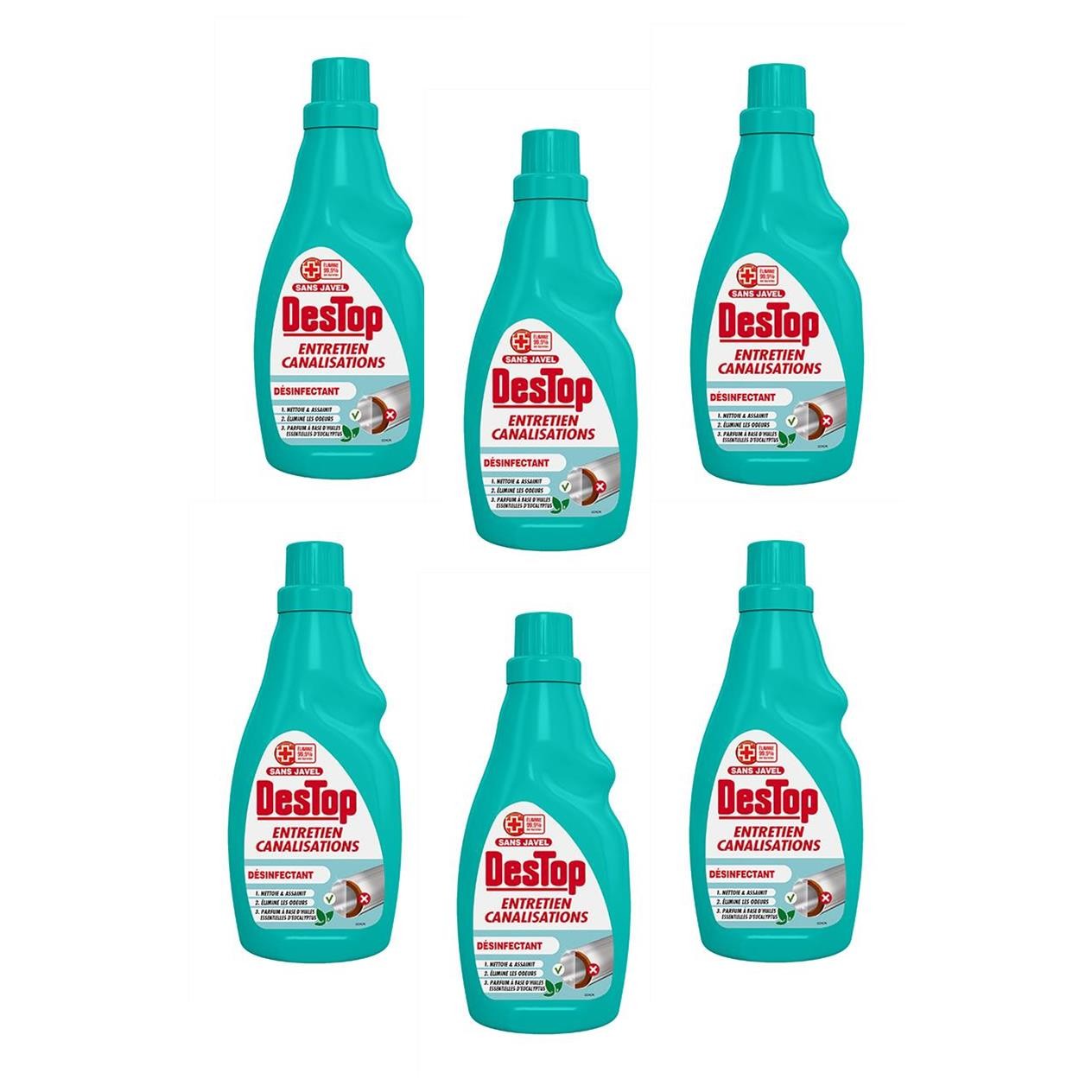 [3665468000251-6] DESTOP Lot de 6 Flacons de 750ml Gel Entretien Canalisation...