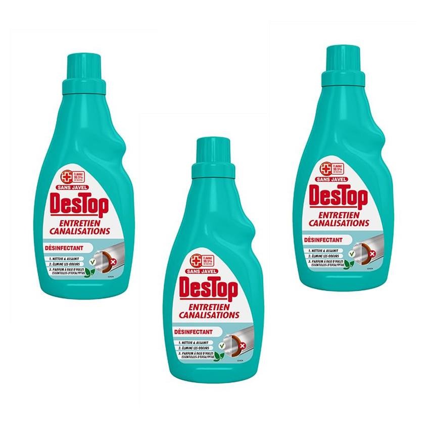 [3665468000251-3] DESTOP Lot de 3 Flacons de 750ml Gel Entretien Canalisation...