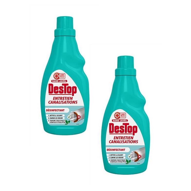 [3665468000251-2] DESTOP Lot de 2 Flacons de 750ml Gel Entretien Canalisation...