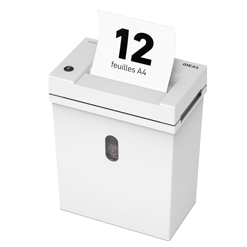 Destructeur de Papier Ideal Shredcat 8200 CC, Coupe croisée 2x12 mm, Niveau de sécurité P-5, 12 Feuilles, 21 litres, Conforme RGPD, Puissant