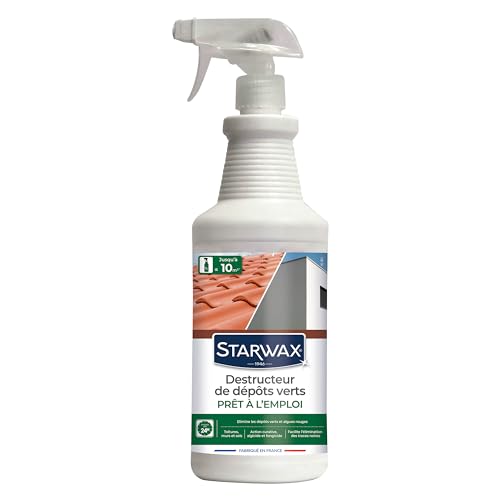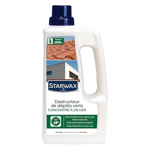 STARWAX - Destructeur de Dépôts Verts Concentré à Diluer - Elimine en Profondeur les Dépôts Verts, Lichens et Algues -Toitures, Murs et Sols - Sans Rinçage -Efficace dès 24h - Fabriqué en France - 1l