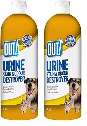 OUT! Destructeur de taches d’urine et d’odeurs pour animaux de compagnie | Enzymatic Pro-Bacteria Cleaner - 1 Litre