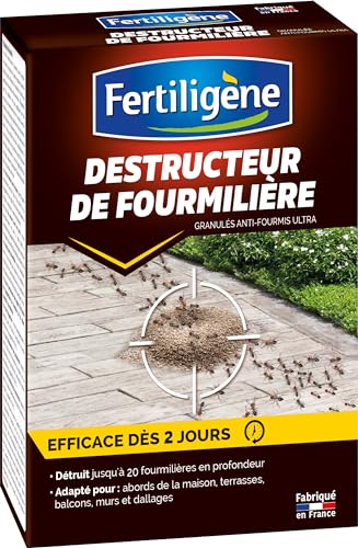 Fertiligène FDEFOU2 - Destructeur de Fourmilières Granulés 400 g - Efficace dès 2 Jours - Elimine 20 fourmilières en Profondeur - Idéal pour abords de la Maison, terrasses, Murs - Fabriqué en France