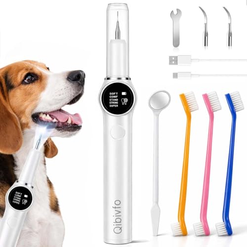 Qibivfo Détartreur Dentaire Chien Chat Électrique, Kit Nettoyage Dents Animaux avec 5 Modes, Élimine Tartre & Plaque, Soin Buccal Rechargeable avec LED, Anti Mauvaise Haleine