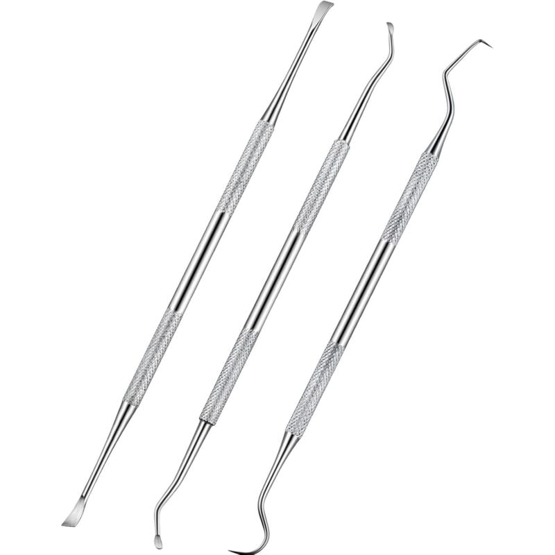 Ryaupy 3PCS Grattoir à Dents pour Chiens et Chats, à Tarte à Bouble Tête Détartreur Dentaire - Acier Inoxydable Outil de Nettoyage(Argenté)