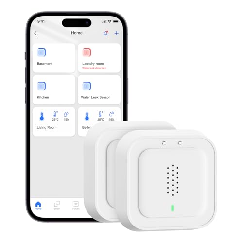 Détecteur de Fuite d'Eau Intelligent, Détecteur d'Indondation Compatible avec Apple HomeKit et SmartThings, Capteur d'Eau IP67 avec Surveillance à Distance et Notifications d'Appli, Lot de 3 avec Hub