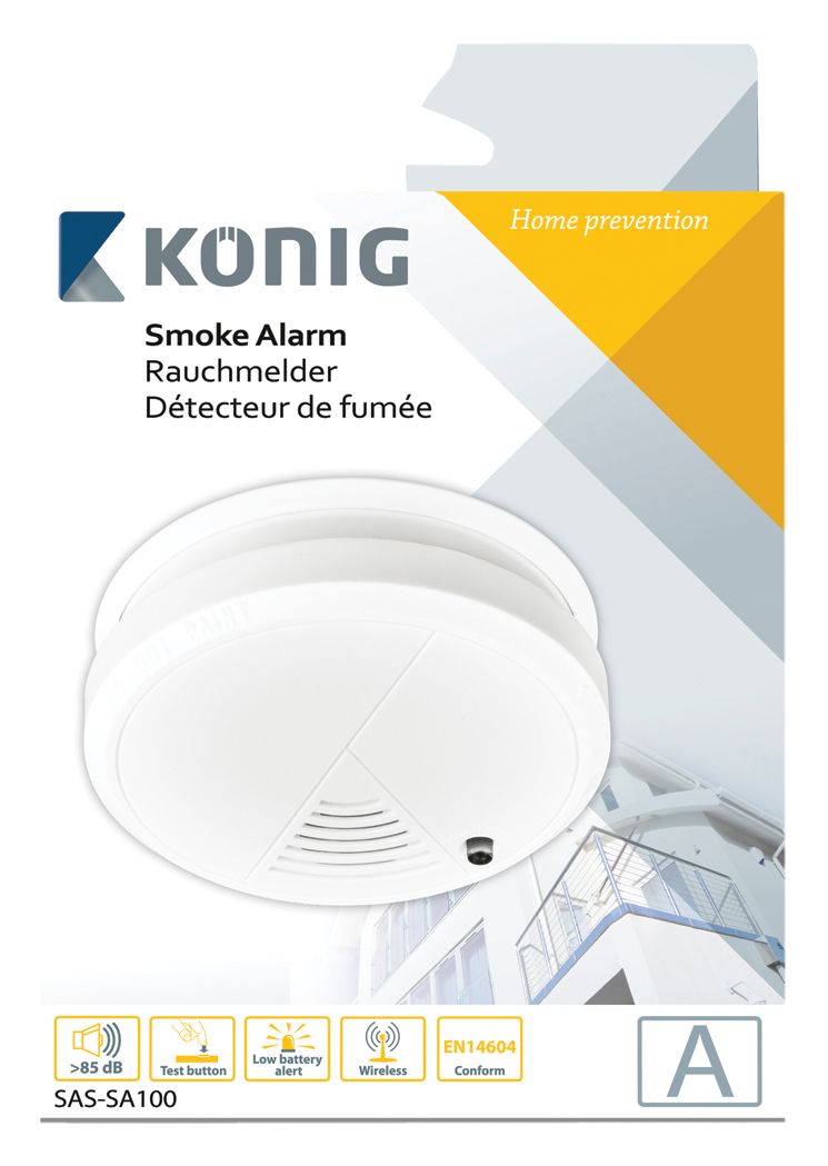 DETECTEUR DE FUMEE OPTIQUE EN14604 CE 85dB Platine Montage König SAS-SA100