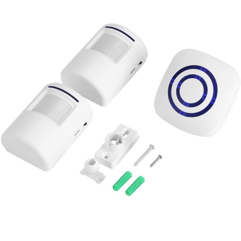 Sonnette sans Fil Detecteur de Mouvement Carillon De Porte Eléctrique 36 Mélodies Alarme De Sécurité avec Emetteur et Récepteur pour Maison Bureau Hôtel Boutique Magasin(1+2 EU)