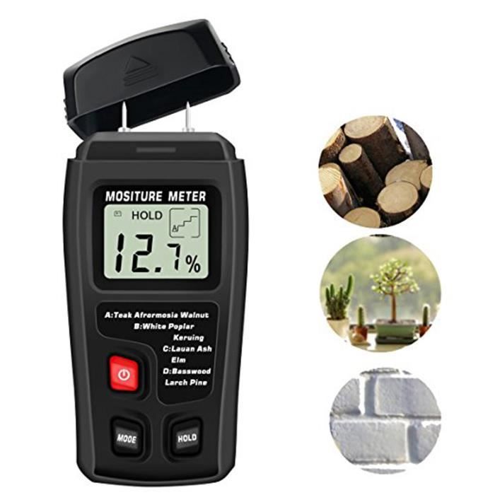 TEMPSA Numérique Bois Humidimètre Détecteur dhumidité 2 broches Portable Gamme de testeur 0% - 999%