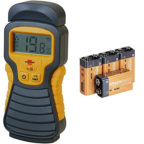 Brennenstuhl Détecteur d’humidité pour divers matériaux, humidimètre avec affichage digital LCD & signal sonore, anthracite & jaune, Quantité : 1 & Amazon Basics Lot de 4 piles alcalines 9 V
