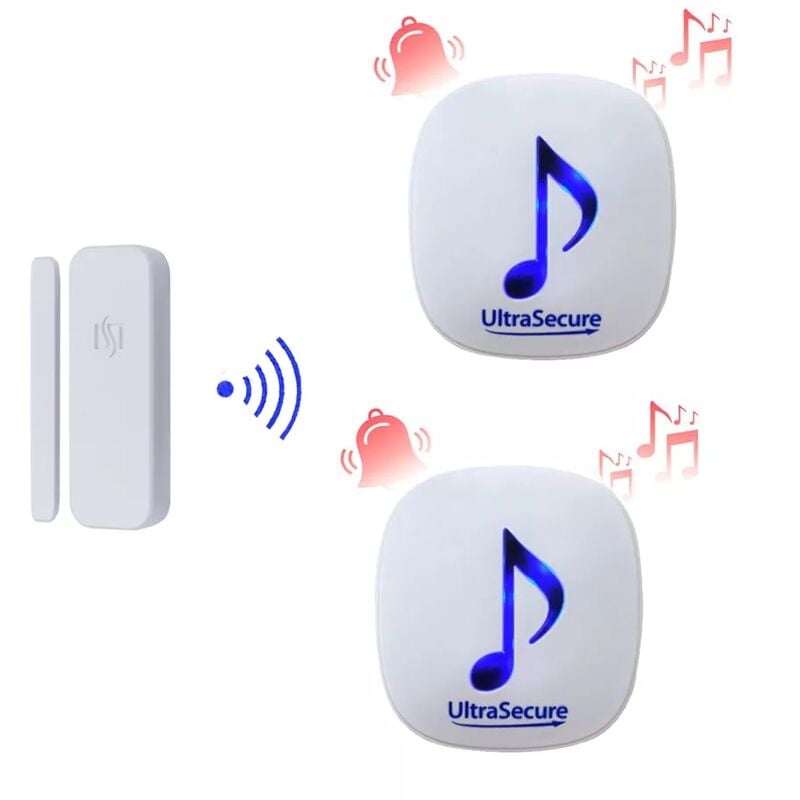 Ultra Secure – Carillon sans-fil 300m – Détecteur d'ouverture autonome – 3 carillons avec 35 mélodies – Volume réglable jusqu'à 105 dB - DA600