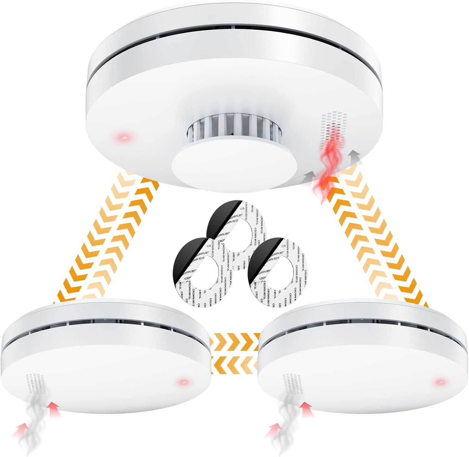 JGD-Détecteur de fumée et de Chaleur avec Batterie de 10 Ans | Certifié EN14604 CE, AS3786 | Capteur photoélectrique pré-connecté | Détecteurs d'incendie/de Chaleur interconnectés sans Fil - 3 pièces
