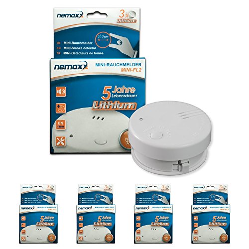 8x mini détecteur de fumée Nemaxx de qualité et discret avec batterie au lithium - selon la norme DIN EN 14613