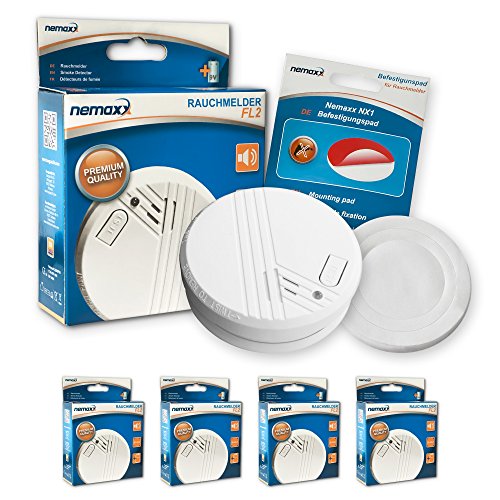 4X Détecteur de Fumée Nemaxx Fl2 - Détecteur de Fumée de Qualité Et Selon la Norme en 14604 Avec la Technologie Photoélectrique Sensible + 4X Nemaxx Nx1 Patin Auto Adhésive Pour Détécteur de Fumée
