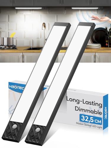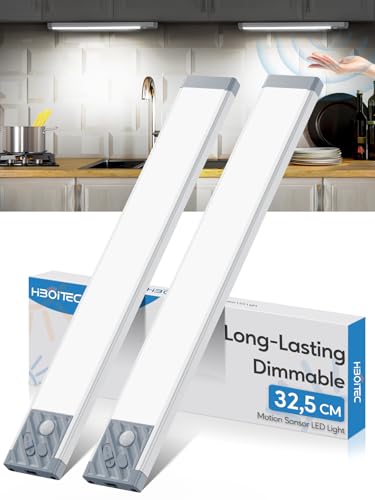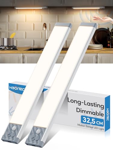 HIBOITEC 350Lumens & Dimmable Lampe Detecteur de Mouvement interieur, 2500mAh Reglette Led Cuisine, USB-C Led Cuisine sous Meuble, Lampe Sans Fil pour Armoire Escalier 33,5 cm, Lumière Chaude