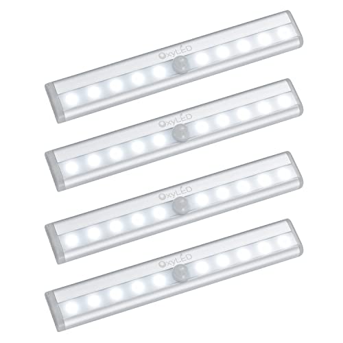 OxyLED Lampe Detecteur de Mouvement Interieur, Lampe A Pile 4PCS 6000K Auto ON/OFF Lampe Led Sans Fil Avec Bande Magnétique Barre Lumiere Escalier Led pour Veilleuse Cuisine Escalier Couloir