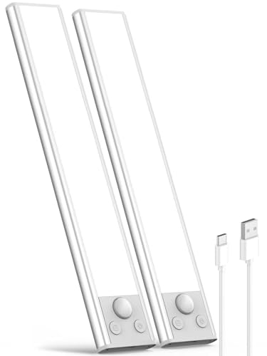 Lampe LED Rechargeable Cuisine Reglette, 2200mAh USB Sans Fil Lampe Detecteur de Mouvement Interieur 3 Couleurs Dimmable Placard Eclairage Magnétique Lampe d'Armoire pour Escalier Dressing, 2 Pack